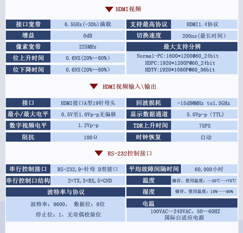 帶長(zhǎng)線驅(qū)動(dòng)功能--- HDMI及DVI輸入端帶數(shù)字均衡調(diào)整電路,輸出帶信號(hào)預(yù)加重增強(qiáng)電路,使信號(hào)能進(jìn)行更長(zhǎng)距離傳輸,輸入輸出都可超過(guò)35米距離;